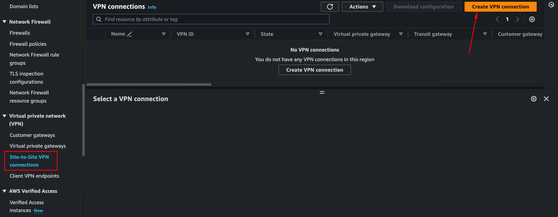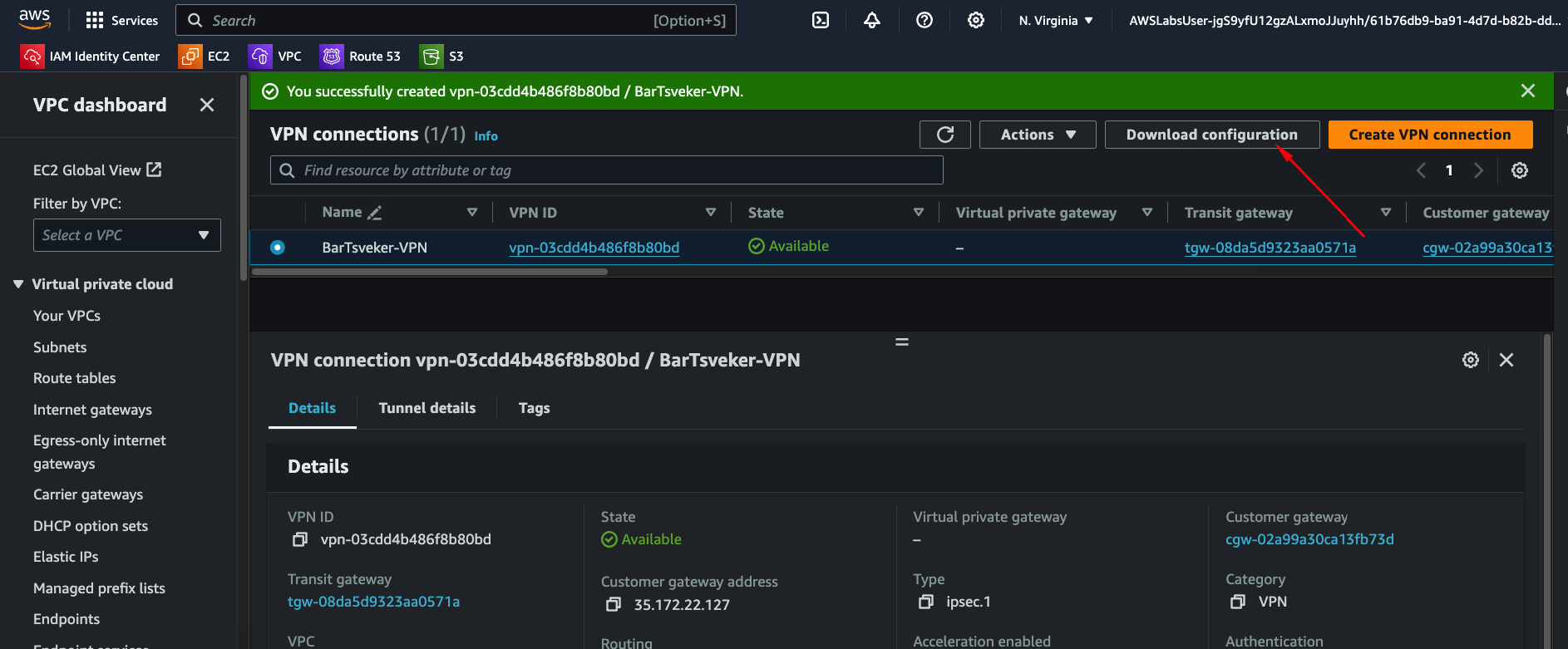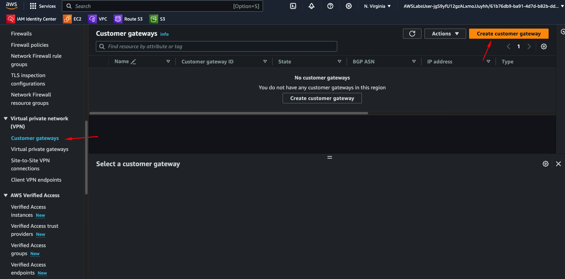 - Customer Gateway: The one you just created