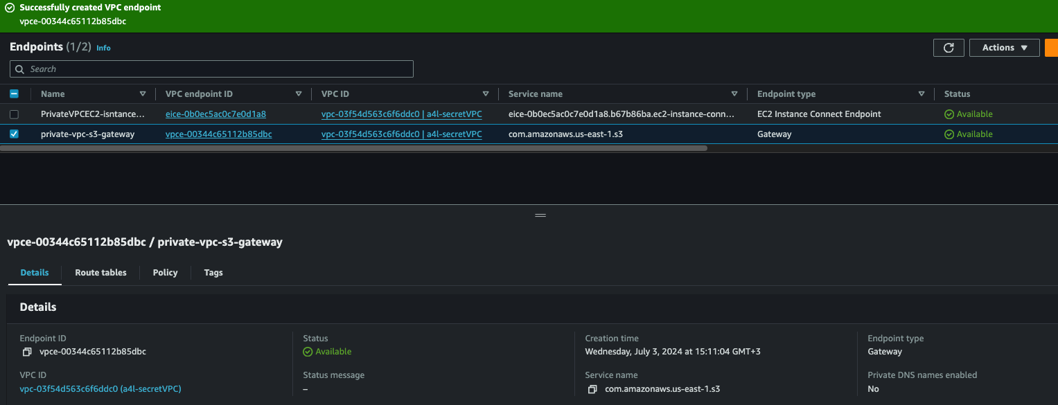 - Service: com.amazonaws.[region].s3